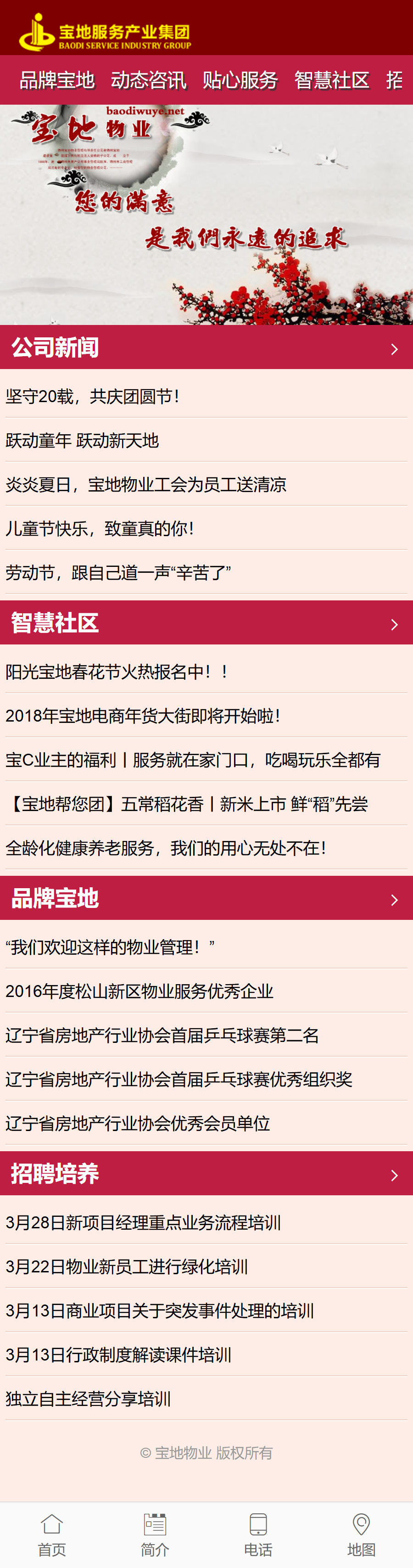 錦州寶地物業(yè)服務(wù)有限責(zé)任公司在錦城規(guī)模化小區(qū)發(fā)展建設(shè)中應(yīng)運(yùn)而生,其成立于1998年,如今的寶地物業(yè)已經(jīng)是錦州唯一一家擁有國(guó)家一級(jí)物業(yè)服務(wù)資質(zhì)的物管服務(wù)企業(yè)。公司踐行“造福萬(wàn)家、創(chuàng)新發(fā)展、精進(jìn)成仁、自省自律、誠(chéng)信為本”的五行文化理念,以“您的滿意是我們永遠(yuǎn)的追求”為服務(wù)宗旨,力求為業(yè)主打造高品質(zhì)的物業(yè)服務(wù)。隨著公司規(guī)模的不斷壯大,目前公司現(xiàn)有員工2500余人,承接項(xiàng)目100余個(gè),其中涵蓋了普通住宅、辦公樓及商業(yè)綜合體項(xiàng)目等,總服務(wù)面積達(dá)到了1000余萬(wàn)平方米,其中世紀(jì)花園小區(qū)、巴黎豪苑小區(qū)、東方庭院小區(qū)、寶地城小區(qū)、曼哈頓小區(qū)、東湖一號(hào)等多個(gè)小區(qū)獲得國(guó)家、省、市優(yōu)秀示范小區(qū)等榮譽(yù)稱號(hào)。